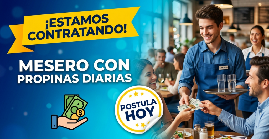 Mesero con propinas diarias Mas Informacion ->